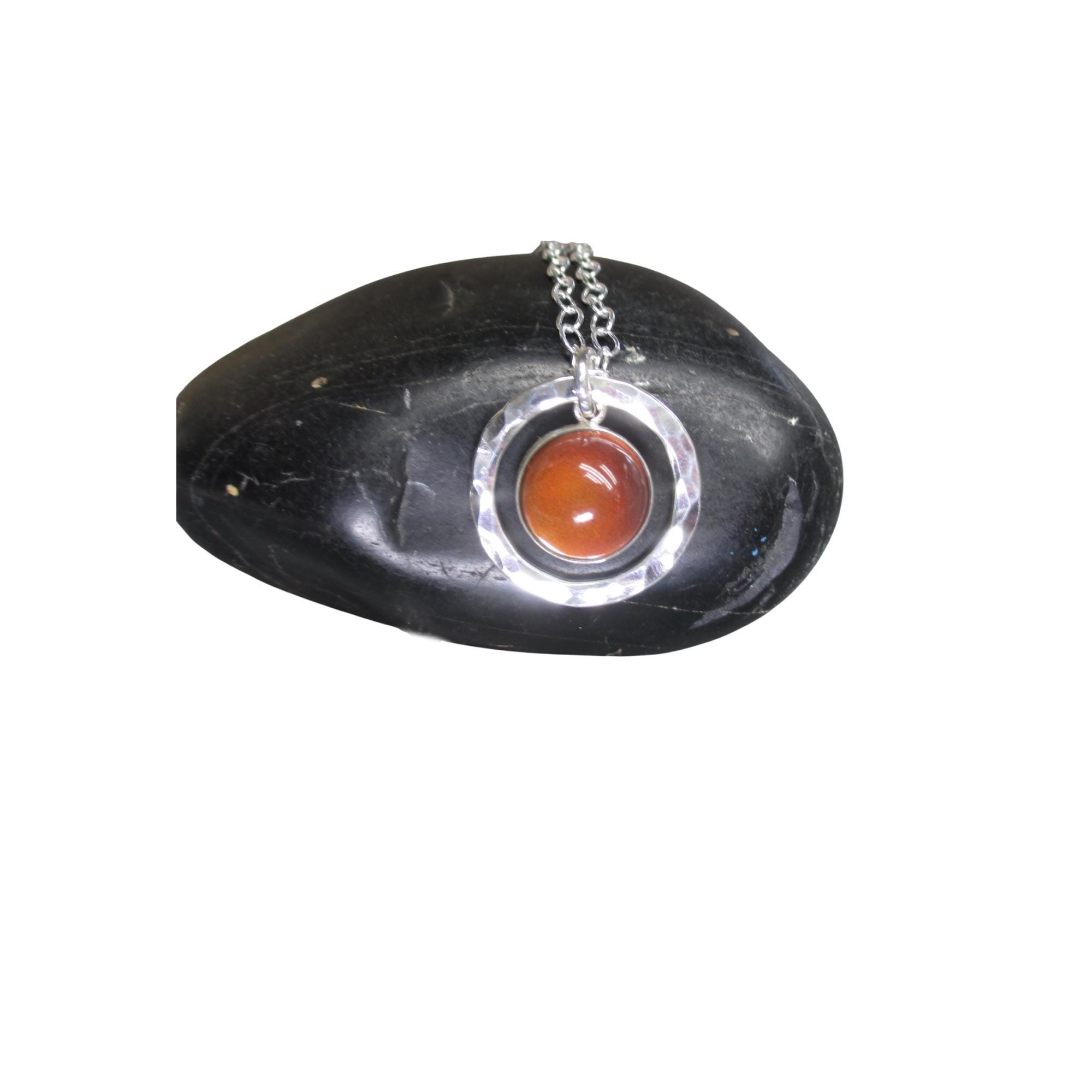 This gorgeous mood necklace features a hammered Sterling Silver circle. Inside the circle is a gorgeous pendant that changes colors depending on your body temperature. The glass cabochon measure 12 mm and the circle measures 2cm (20mm). It all dangles from a high quality solid Sterling Silver chain with spring ring clasp, measuring 18" in length. Simple, yet unique! As always, comes in a nice gift bag.