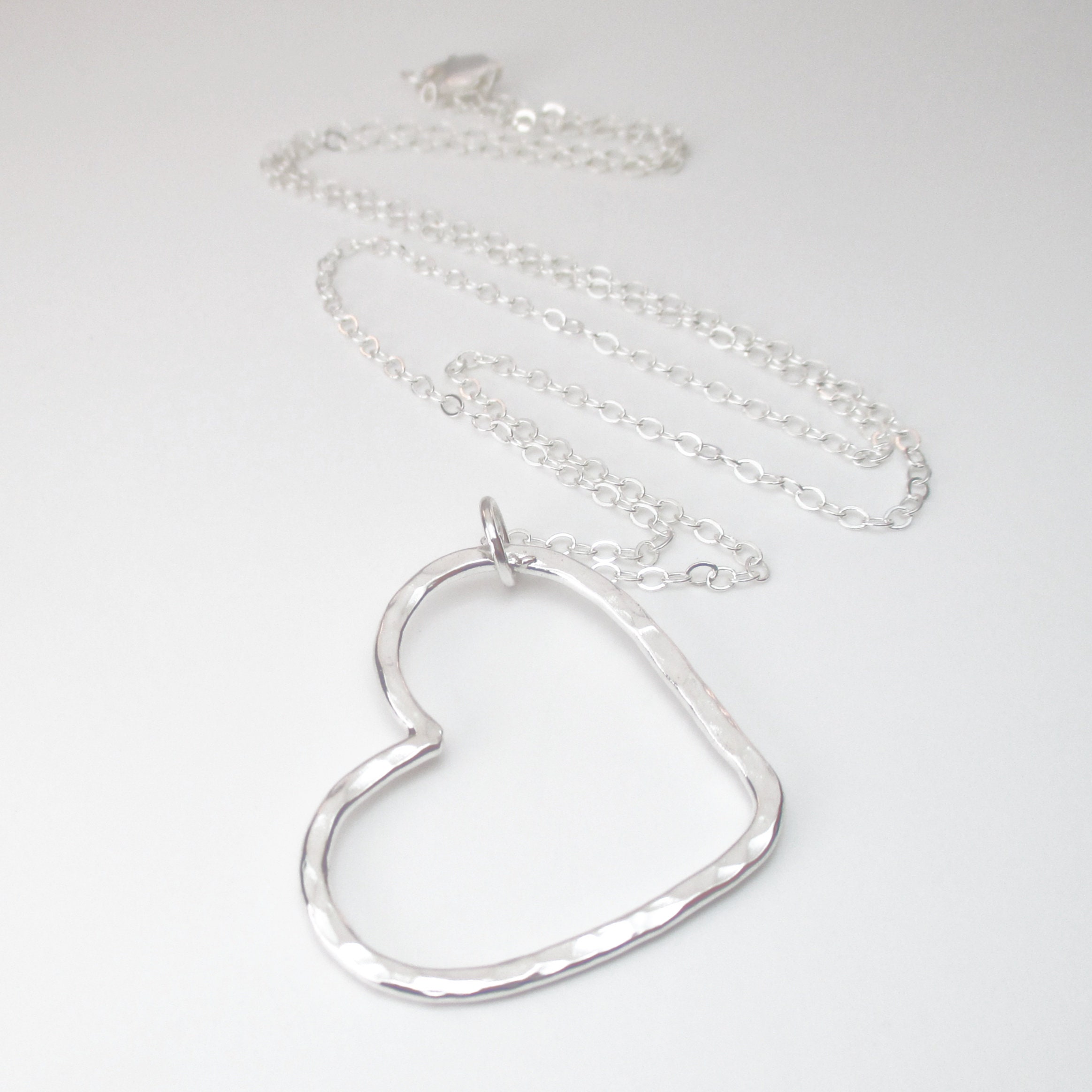 This Sterling Silver chain necklace is simple, shiny and beautifully handmade. It features a handmade beautiful textured heart with hammered dimples that have been polished smooth and shiny. The chain is a high quality Sterling Silver and the circle is 1.5 inches wide and long and made from hammered Sterling Silver. All components (clasp etc.) are made form pure Sterling Silver.